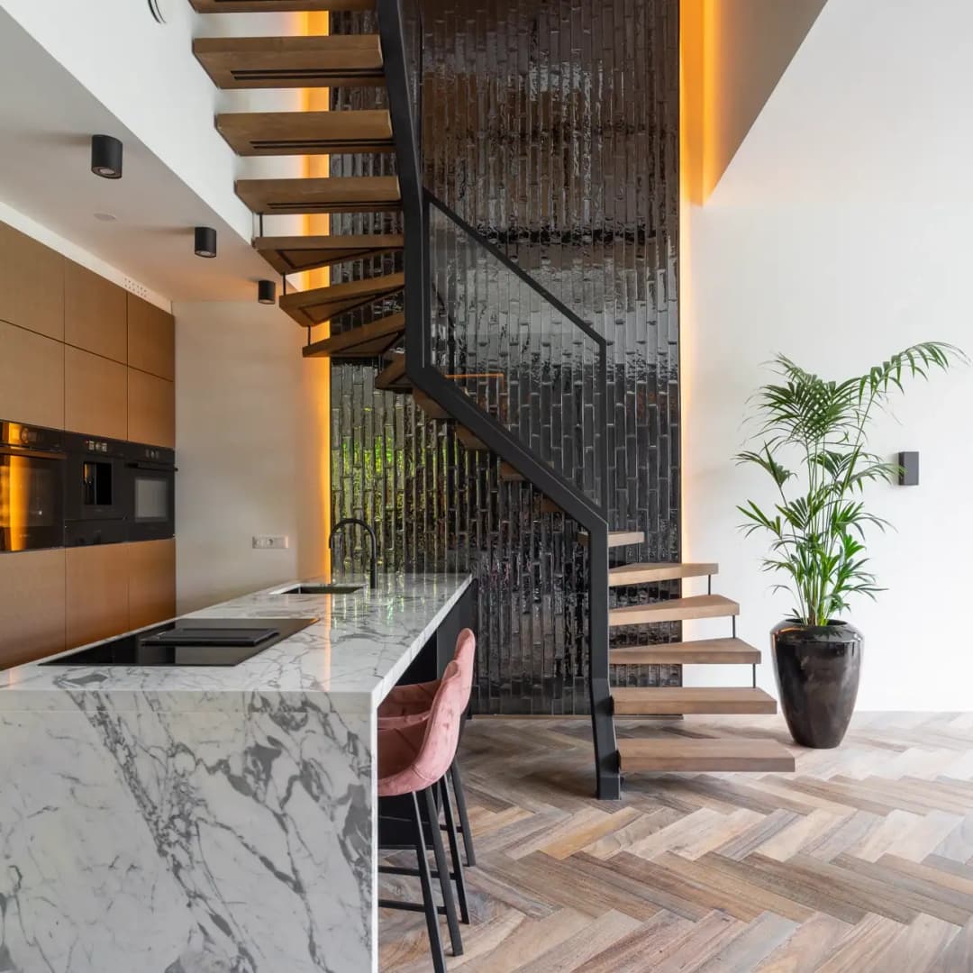 Hoge kwaliteit materialen zoals staal, hout en beloopbaar glas